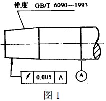 5.6.1.2.2 以鉆夾頭錐孔定位, 裝在檢驗芯軸上,芯軸放在檢驗夾具上,指示器測頭觸及外套前端外圓上,旋轉芯軸檢驗。指示器讀數的最大差值,就是外套的徑向跳動 |